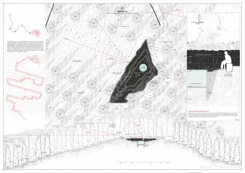 These are not merely functional spaces, but subtle gestures in the landscape that interact with natural elements, vegetation, and the disturbances of the environment, forming a processional ritual that connects to the transcendent essence of mourning.