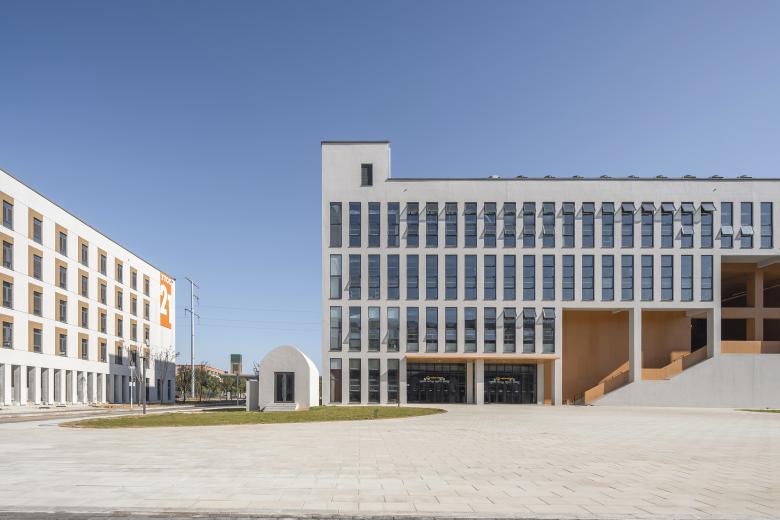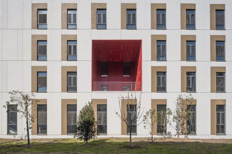 The four dormitory buildings on the southwest side of the campus together with the completed library and gymnasium form a "vibrant block". The two dormitory buildings, the canteen and an existing dormitory on the north side of the campus together form the "campus farm block". The two dormitories on the northeast side of the campus together with five teaching, training and office buildings, the equestrian hall and an existing teaching building form the "campus square block". The two teaching buildings on the southeast side of the campus together with an existing teaching building form the "Boulevard Block" and become an important spatial node connecting Phase 2 to Phase 1. It’s planned that each block has a core public space and diverse functions, breaking the functional zoning of single goals and promoting communication and collaboration between different colleges and majors. The library, teaching building, gymnasium, equestrian hall and campus farm will together constitute an important carrier of university life education.