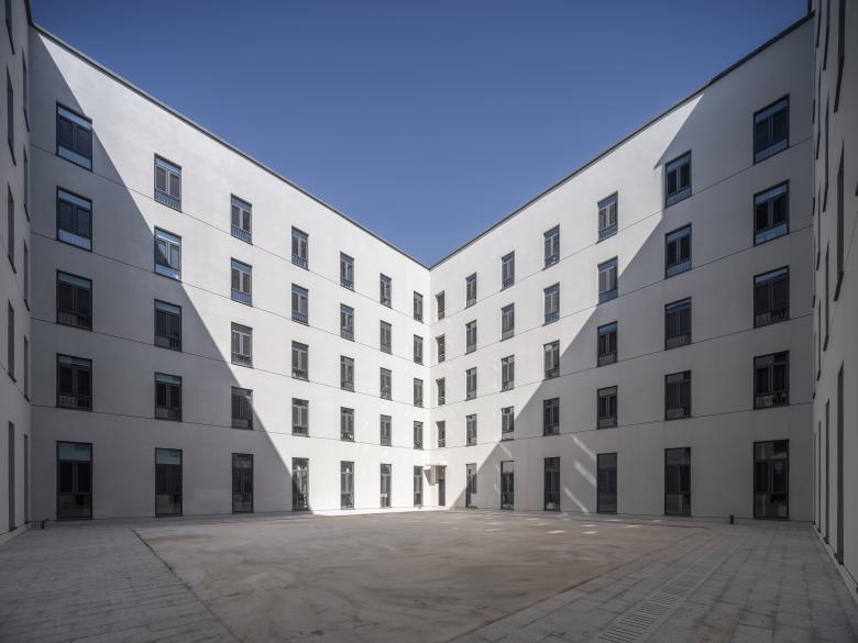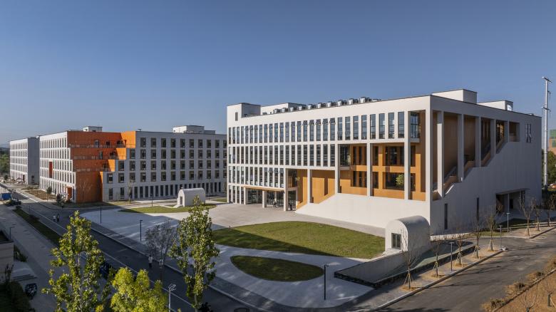 The new campus master plan organizes the functional layout of buildings with "multi-center, community-based" open blocks and create an "open, green, shared and vibrant" campus life. The basic building units that make up the block are in the shape of a square, in which the enclosed inner courtyard space is connected to the external space, becoming an organic part of the campus open space. Even in closed-management student dormitories, the inner courtyard can still be freely entered and exited through the open lobby. The spatial planning of the entire campus breaks the traditional definition of internal closed space and external open space, and is divided into two major parts: open communication space and closed functional space. The closed functional space ensures the different functions, while the open communication space organically combines these different functional spaces into a community. The squares, streets and gardens distributed in the campus constitute multiple centers of the “city” block, while the open courtyards of each building constitute community spaces with similar forms but diverse contents.