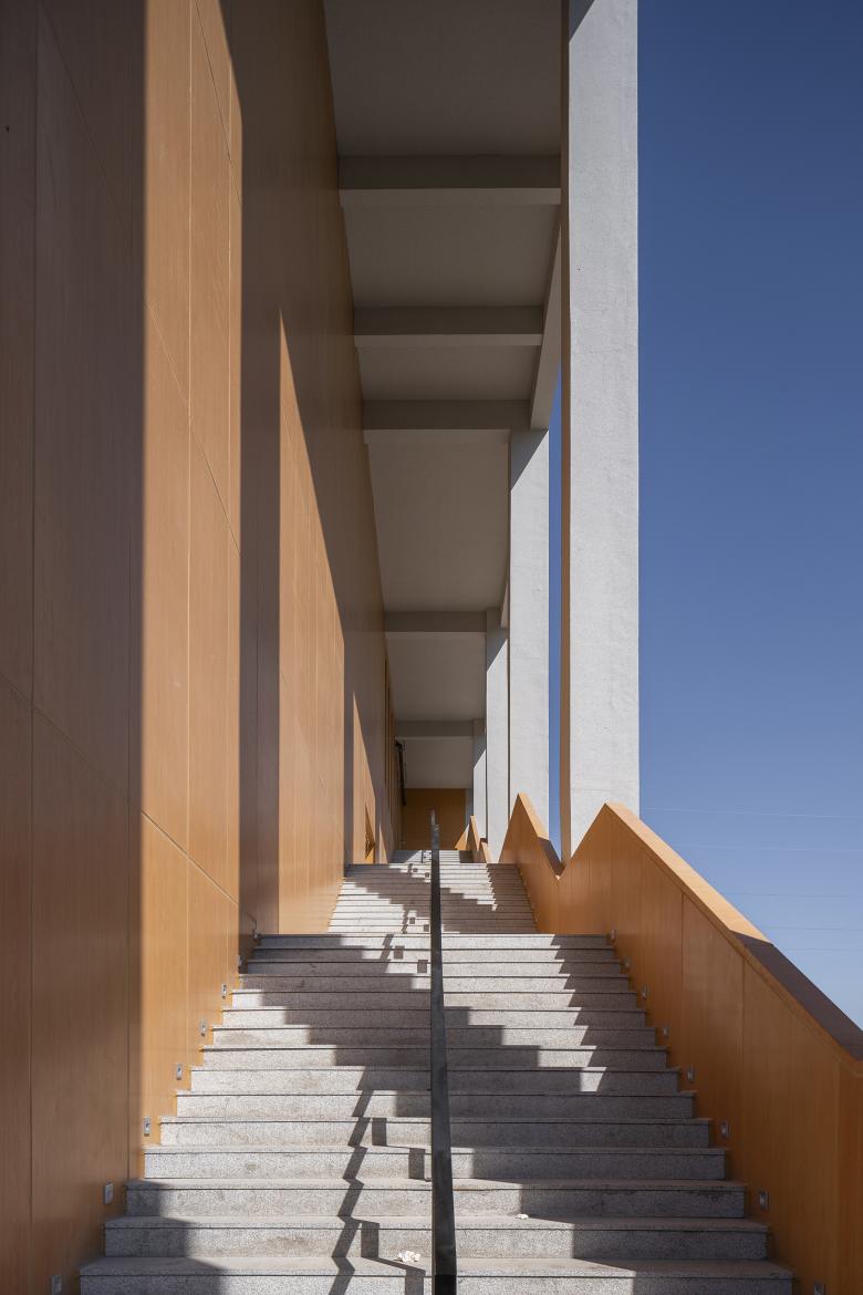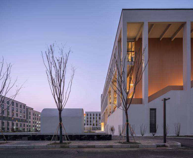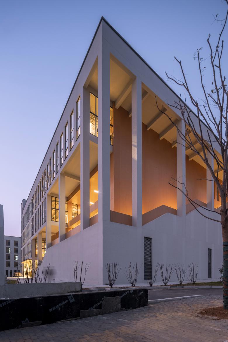 The newly designed canteen is located next to the north gate of the campus, with 4 floors above ground and 1 floor underground, a total above ground area of approximately 14,100 square meters. A set of continuous stairs is embedded in the south facade and extends to the east facade, connecting the first floor to the fourth floor. This space becomes the part of the campus open communication space embedded in the canteen cube. This space is not only used as a staircase, but also a set of different prototypes from urban public spaces: including: corridors, a small square on the second floor, an inner courtyard on the third floor, and a roof garden on the fourth floor. Therefore, this cubic canteen is composed of two parts: an open communication space and a closed functional space. The closed functional space provides breakfast, lunch and dinner for thousands of students in the school. The open communication space provides an important space for campus community life. This group of diverse spaces includes indoor space, outdoor space and semi-outdoor space, which are connected together to form an urban extroverted living space. At different times of the day, it will be fully utilized to hold open lectures, flea markets, community activities, birthday parties, course exhibitions, project promotions, and even dances and open-air movies,etc. The function of the canteen building goes beyond the basic attribute of three meals a day and becomes a campus life generator that stimulates public interaction and promotes face-to-face communication.