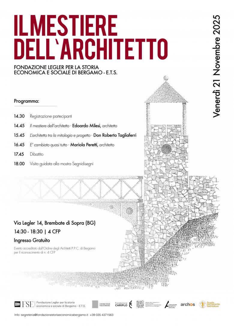 Dal 14 novembre al 23 dicembre la Fondazione Legler per la Storia Economica e Sociale di Bergamo ospita a Brembate di Sopra (via Legler 14) la mostra “Segni di/Segni”, dedicata all’architetto Cesare Rota Nodari e curata da Edoardo Milesi. L’esposizione...