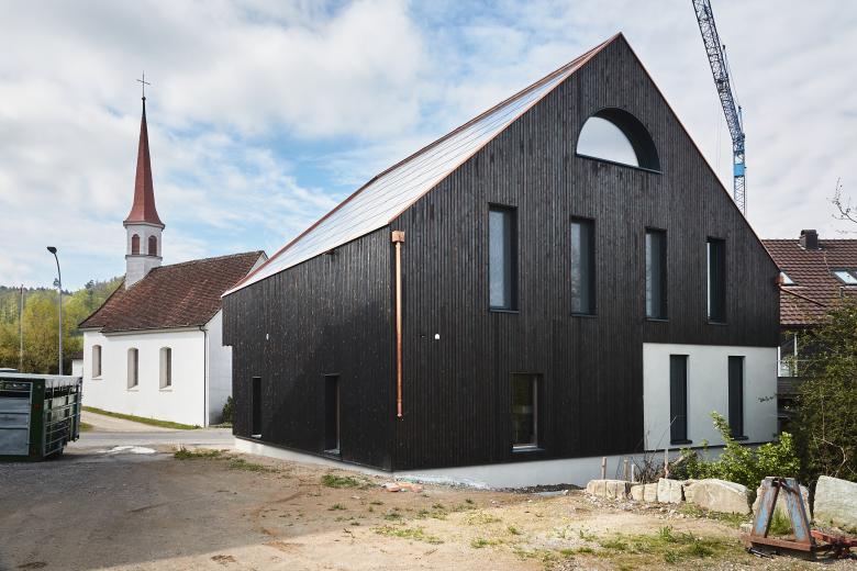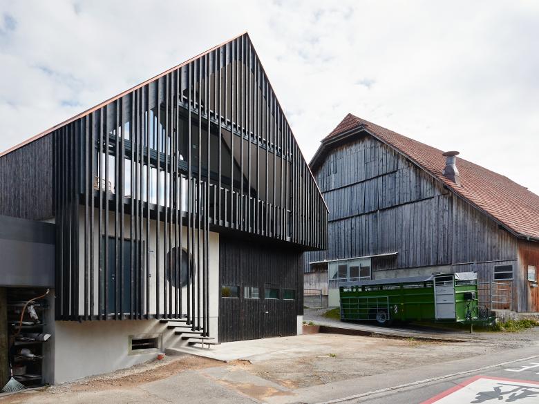 Im nahen Umfeld der Kapelle und des Zehntenhauses im Ortskern Uezwils wurde eine alte Remise unter Wahrung der überlieferten Typologie neu interpretiert und in zeitgenössischer Architektursprache in ein Wohnhaus mit integrierter Schlosserei umgebaut.