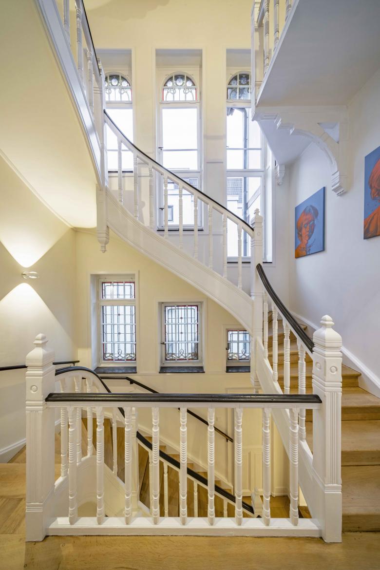 Die historische Stadtvilla von 1899 wurde von Hollin+Radoske denkmalgerecht saniert und in weiten Teilen mit zeitgemäßer Innenarchitektur als Kontrast zum Bestand zu einem stimmigen Gesamtkonzept entwickelt.