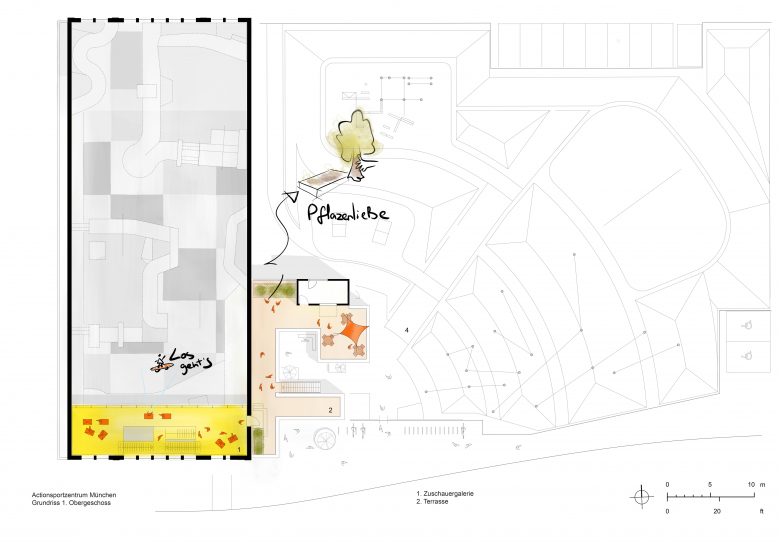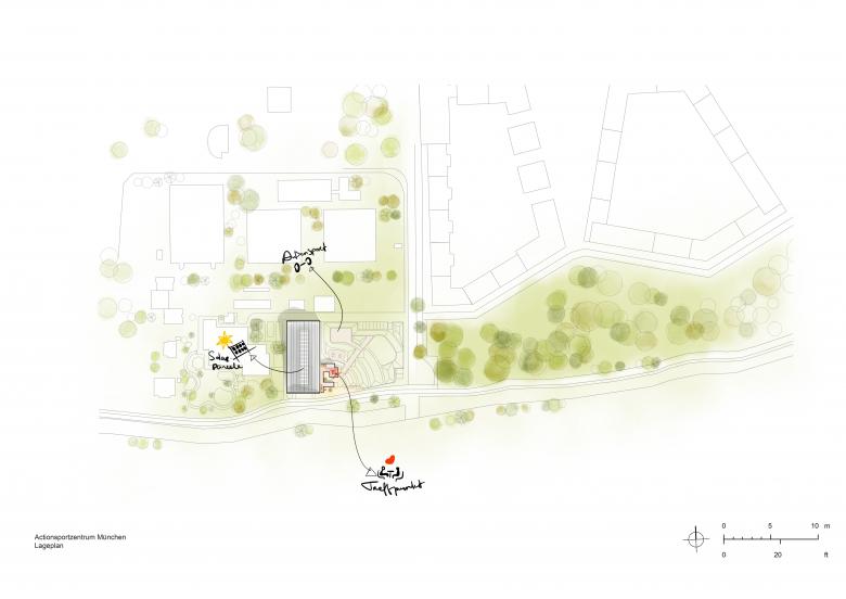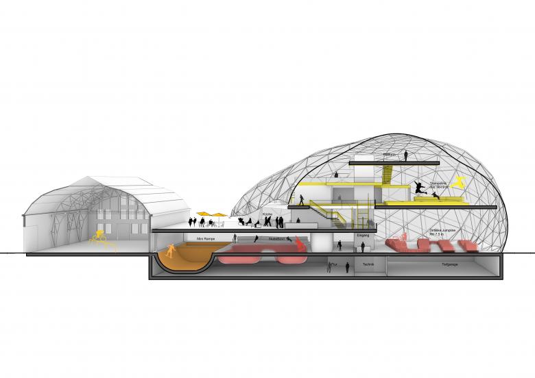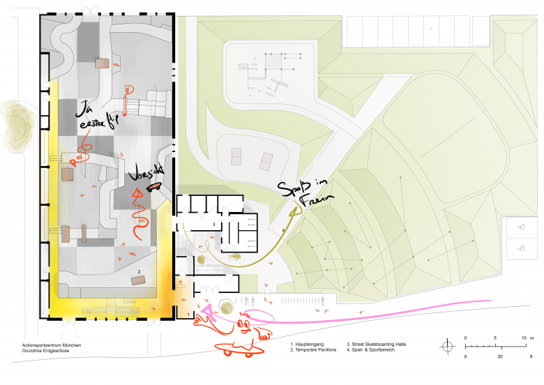 The Action Sports Center was developed in response to growing demand for self-organized extreme sports spaces. In close collaboration with future users, Munich’s Department of Education and Sports created a detailed program that formed the foundation of our design, further refined through participatory workshops with all stakeholders.