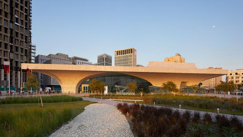Prior to the introduction of the metro network last year, most people in Doha travelled by car. One of the key goals of the metro network is therefore to create an efficient and reliable service that encourages the use of public transport as a valid alternative to private transportation. The design of the stations plays a key role in this endeavour, by making use of urban design principles to create public spaces that enhance the urban experience at the pedestrian scale and build new habits for the Doha community.