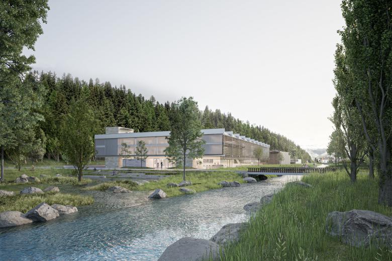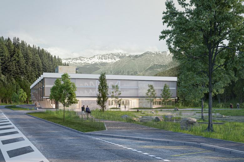 Die städtebauliche Setzung zielt darauf ab, sich in die bestehende Situation harmonisch zu integrieren und die einzigartige Lage zwischen Seen und Bergen optimal zu nutzen. Nur fünf Minuten mit dem Fahrrad vom Zentrum von St. Moritz entfernt, bietet die Eissporthalle eine ideale Verbindung zwischen urbanem und natürlichem Raum. Sie markiert einen neuen Auftakt für St. Moritz mit repräsentativem Vorplatz und einer Hauptfassade, welche sich zum neuen Gewässerbereich ausrichtet.