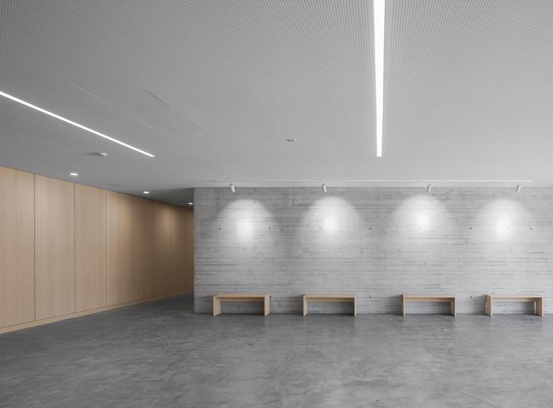Um das zentrale Foyer lagern sich drei Nutzungsbereiche: die Klassenräume mit dazwischen liegenden Differenzierungsräumen, der Lehrer- und Verwaltungsbereich und die Mensa mit Multifunktions- und Kunstraum