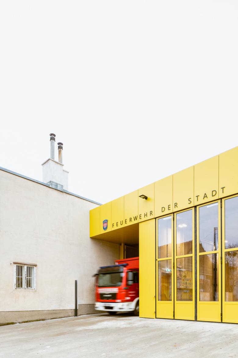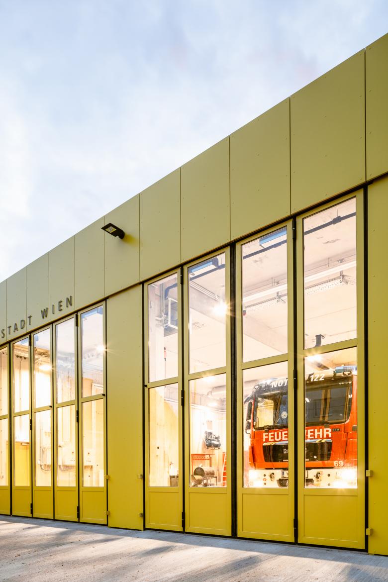 Die Aufnahme des klassischen Wiener – in Speising vorherrschenden – Fassadenfarbtons Gelb dient der Einbindung des Gebäudes in seine Umgebung. Ein kräftiges Gelb vereint die verschiedenen Metallarbeiten der neuen Fassade und schafft eine identitätsstiftende Präsenz der Feuerwache Speising. Schützend und dienend bietet das Projekt Raum für die Feuerwehrleute, die regelmäßig ihr eigenes Wohlbefinden riskieren, um Leben zu retten.