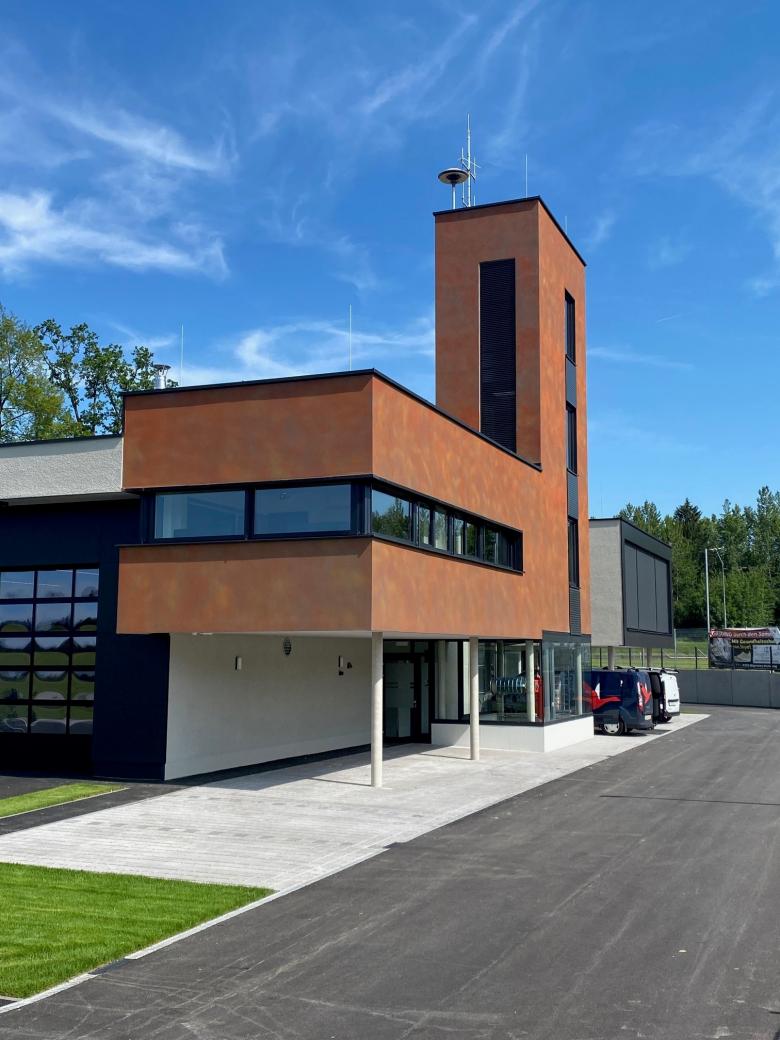 Die Feuerwehr ist optisch und formal in zwei Baukörper gegliedert: