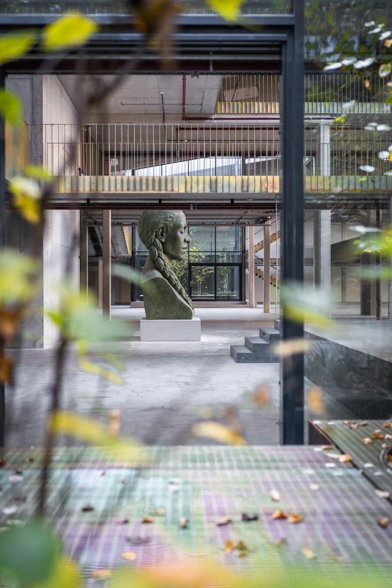 In order to maintain the generous feeling of space and the openness to use, no classic floors are created, but instead the space is filled with platforms. Compared to a classic office building, this configuration also enables vertical communication. At the same time, all parts of the building benefit equally from the atriums and the multi-story air spaces.