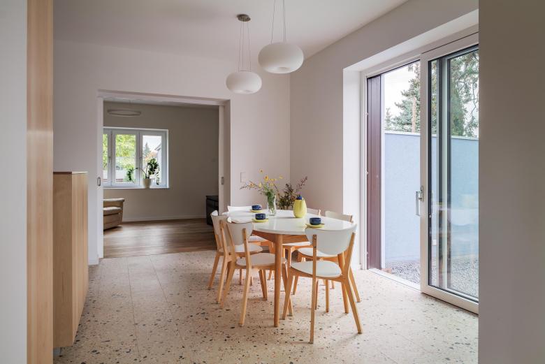 Transstruktura und Studio Singer haben ein Wohnhaus aus dem Jahr 1936 im Norden Berlins umgebaut und energetisch modernisiert. Das Gebäude wurde außen gedämmt und erhielt eine neue Fußbodenheizung. Beheizt wird es mit einer Erdwärmepumpe, die durch eine Photovoltaikanlage auf dem Dach unterstützt wird. Unser Ziel bei diesem Sanierungsprojekt war nicht nur die energetische Modernisierung, sondern auch die Verbesserung der Wohnräume durch eine Umstrukturierung und Neugestaltung der Grundrisse.