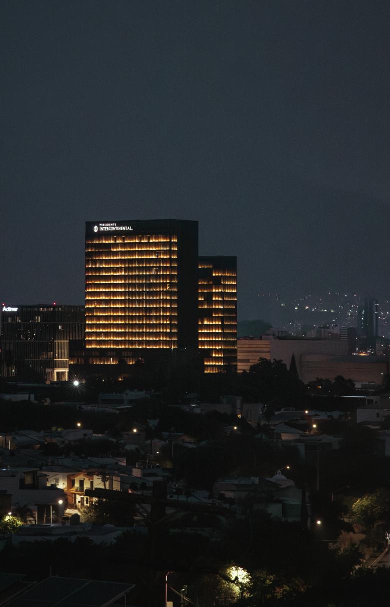 Diseñado por Francesc Rifé Studio, el nuevo Hotel Presidente InterContinental Monterrey reúne arquitectura e interiorismo bajo una misma lógica. Con diecinueve plantas y 293 habitaciones, el proyecto se guía por el ritmo de las celosías —tanto en el exterior como en el interior—, por un sentido del orden y por una materialidad que combina piedra natural Rochelle, madera de encino y latón para transformar la gran escala en una experiencia íntima.