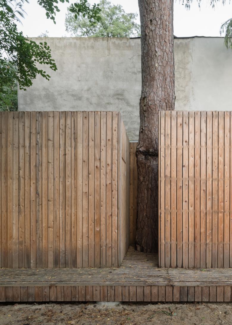Das Wochenendhaus am Ziestsee, entworfen vom Berliner Architekten Marc Hensel, verbindet die historischen Wurzeln des Altbaus mit modernen Ideen. Neben dem weißen, zu seiner ursprünglichen Schlichtheit zurückgebauten Altbau hebt sich der neue holzverschalte Anbau durch seine klare, vertikale Struktur deutlich ab. Mit markantem Antlitz und einer Höhe von 6 Metern kontrastiert er mit dem alten Gebäude und schmiegt sich gleichzeitig unaufgeregt an dieses an. Auch in die waldreiche Umgebung fügt sich das Ensemble mühelos ein und schafft eine sanfte Verbindung zwischen Architektur und Landschaft.