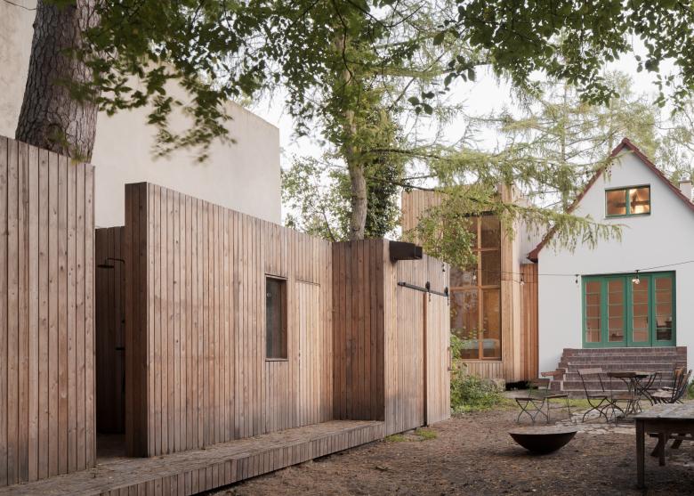 Marc Hensel zeigt mit diesem Wochenendhaus, wie moderne Architektur sensibel und respektvoll mit historischem Bestand kombiniert werden kann. Der Anbau und das Nebenhaus mit Sauna und Außendusche sind nicht nur funktionale Ergänzungen zum Dagewesenen, sondern tragen auch ästhetisch zur Gesamtharmonie des Anwesens bei. Hier ist ein Ort entstanden, an dem sich Vergangenheit und Gegenwart, Natur und Mensch begegnen und die Seele baumeln kann.