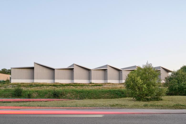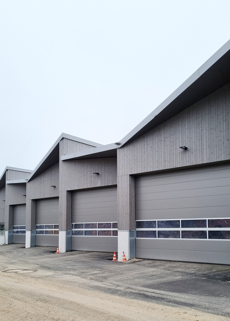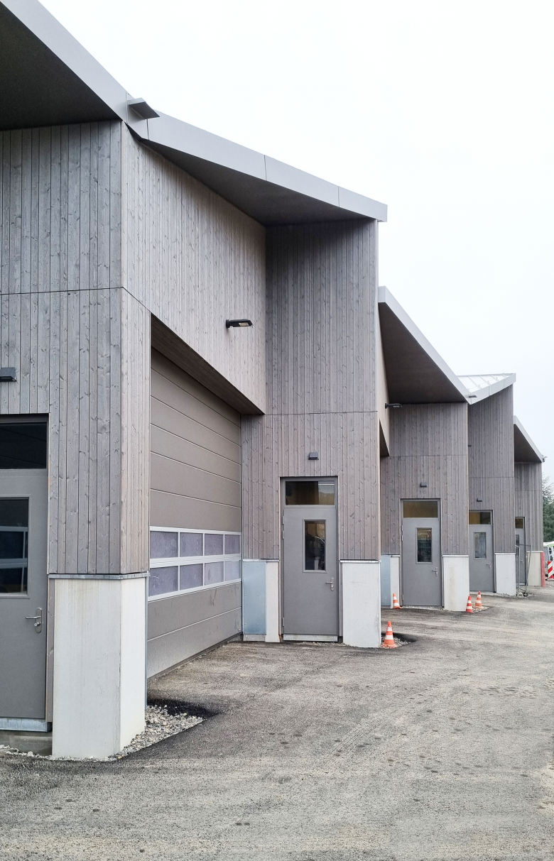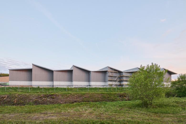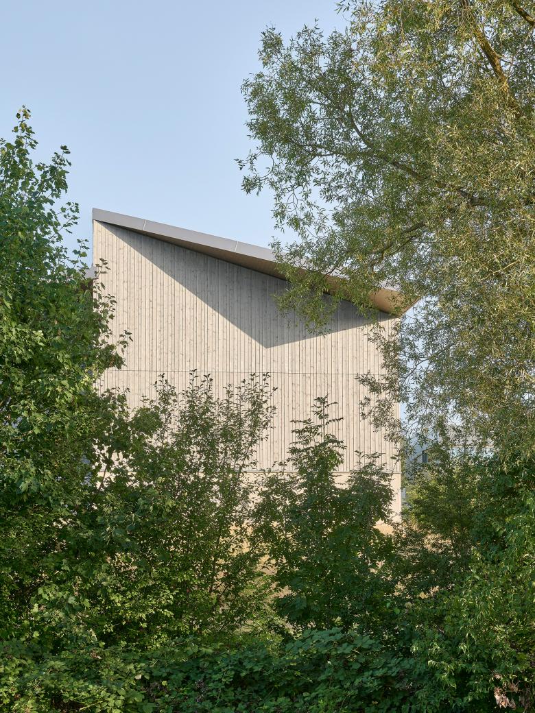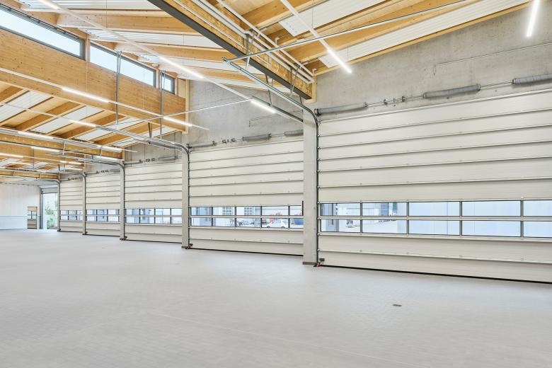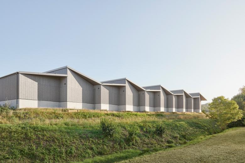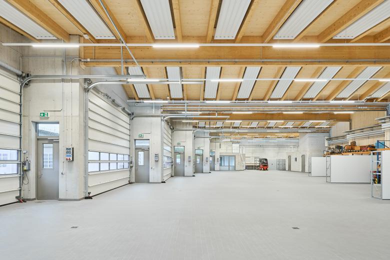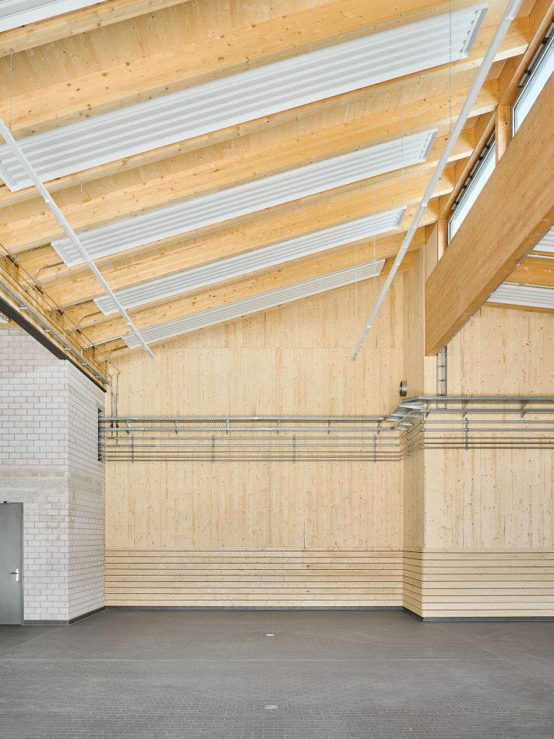 Auf den robusten Sichtbetonsockel setzt sich eine Holzkonstruktion in Holzständerbauweise, welche bedarfsgerecht wärmegedämmt oder als Kalthallenkonstruktion konzipiert wird. Entwurfskonzept ist es, die Dachfläche mit einer wirtschaftlichen, praxistauglichen Dachhaut auszustatten, welche leicht die Integration von PV-Paneelen ermöglicht.