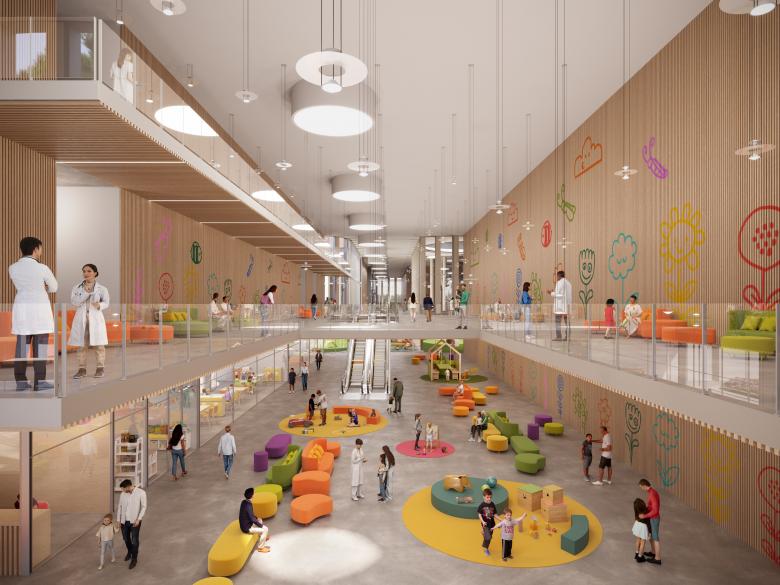 Amb un plantejament innovador, el disseny del nou hospital integra espais d’alta tecnologia amb el joc infantil, creant un entorn accessible i sostenible. El complex inclourà auditori, oficines, àrees d’humanització, jardins terapèutics, zones de joc, horts urbans i una granja educativa. Comptarà amb 437 llits, 14 quiròfans, tecnologia avançada en medicina nuclear i sistemes robòtics per a cirurgia neonatal i pediàtrica.