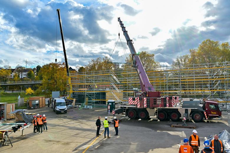Am 3. November 2025 fiel in Stuttgart-Zuffenhausen der Startschuss für ein europaweit einzigartiges Bauprojekt: Auf dem Kelterplatz an der Hohenloher Straße wurden die ersten Holzmodule für ein transportables und vollständig rückbaubares Hallenbad angeliefert und montiert.