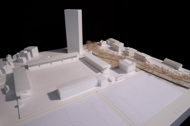 Das bestehende Stadion des FC Winterthur, die Schützenwiese, liegt zentrumsnah und prominent zu Füssen des Sulzer Hochhauses. Das neue Stadion Schützenwiese folgt dem Vorbild englischer Stadien, die additiv in mehreren Ausbau-Etappen entstanden sind. Das Sportfeld wird mit klaren, kubischen Bauwerken umschlossen, dazu wird ein gedeckter Aussenraum formuliert, der eine Verzahnung des Stadions mit dem öffentlichen Raum bewirkt.