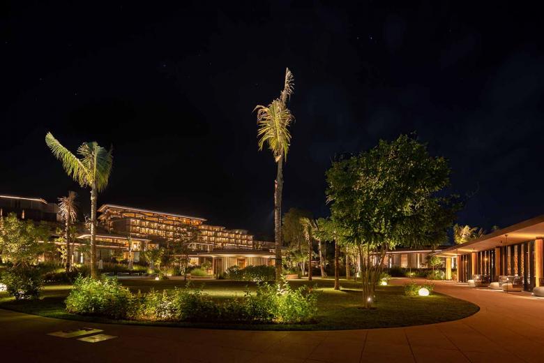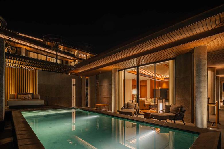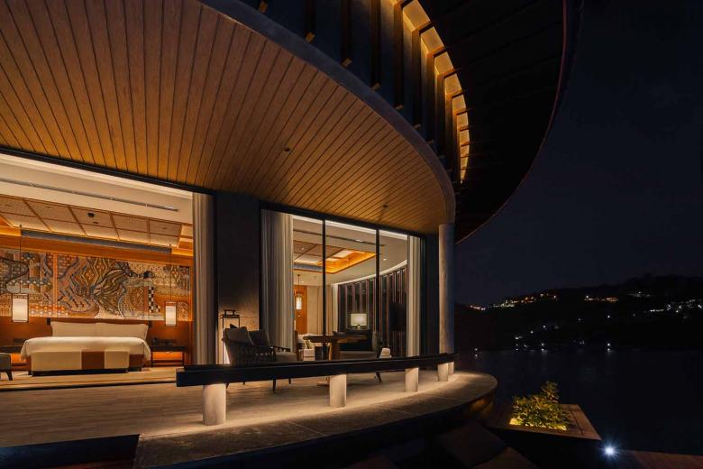 Schon der Name „Ta’aktana” bedeutet in der Sprache der Manggarai „grünes Land” und steht für die Geschichte der tropischen Landwirtschaft und Viehzucht. Durch die Verwendung bestimmter Materialien, Formen und einer bestimmten Raumplanung hat das Designteam die Essenz der Manggarai in verschiedene Motive verwandelt, die den Gästen als Erzählmittel dienen. Natursteinwände mit Sanskrit-Reliefs leiten durch die Lobby zur Aussichtsterrasse. In den Veranstaltungsräumen greifen Lederbespannungen und strukturiertes Holz gestalterisch auf den Caci-Tanz zurück. Auch die typische kreisförmige Struktur der Reisterrassen findet sich im Resort wieder – von den Dächern bis hin zu den Details beim Frühstück. Die Architektur wird hier selbst zum Erzähler: zurückhaltend und dennoch deutlich lesbar. Sieben auf Stelzen errichtete Villen ragen über das Meer hinaus. Von hier aus hat man freien Blick auf den Horizont und erlebt Labuan Bajo als „Stadt der tausend Sonnenuntergänge“. Die technische Ausstattung folgt dem differenzierten Raumkonzept: KNX kommt in öffentlichen Zonen zum Einsatz, während in privaten Bereichen klassische Steuerungen ausreichen. Die Schalter der Serie LS 990 in dunklem Aluminium und Matt Graphitschwarz fügen sich unaufdringlich, aber bewusst gewählt in die materialreiche Umgebung ein. Dieser Designansatz prägt Räume und Technologie gleichermaßen – unaufdringlich und doch wirkungsvoll.
