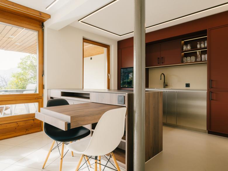 Die Küche öffnet sich neu zum Wohn- und Essbereich, wodurch ein fliessendes Raumkontinuum entsteht.