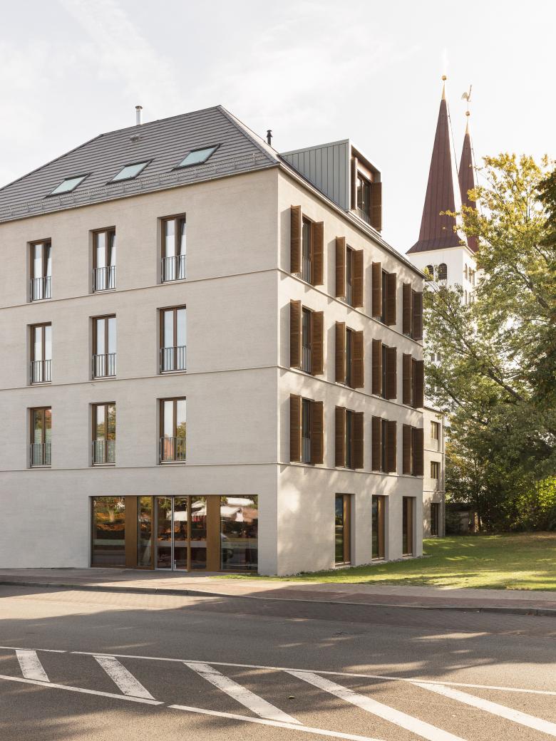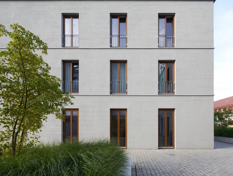 Die insgesamt 24 Wohneinheiten in den Obergeschossen der drei Häuser sind von unterschiedlicher Größe. Sie reichen von 60 bis 120 qm und sorgen für eine gemischte Bewohnerstruktur. Die erforderlichen Stellplätze befinden sich in einer Tiefgarage mit direkter Anbindung an die Treppenhäuser der drei Gebäude. Die Zufahrt in die Garage erfolgt direkt von der Oststraße.