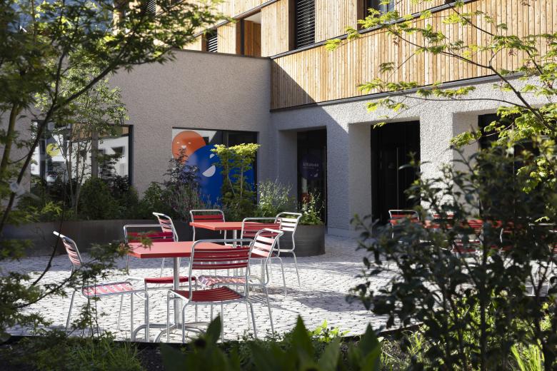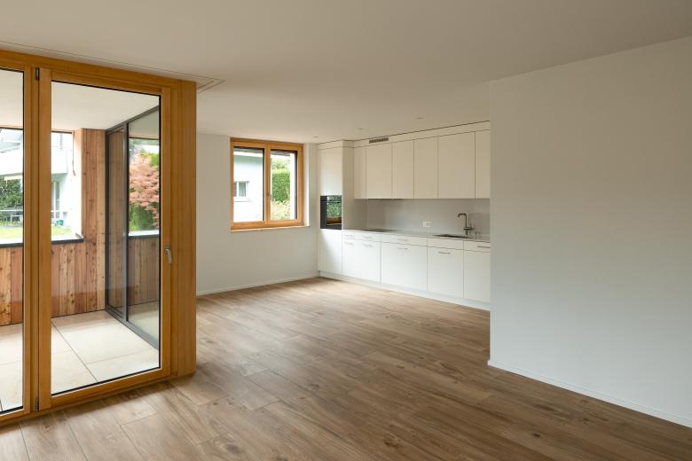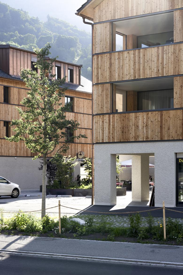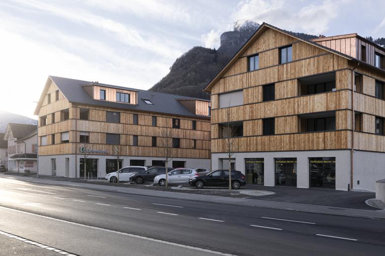 Zwei Gebäude mit Miet- und Eigentumswohnungen sowie Gewerbeflächen im Erdgeschoss.