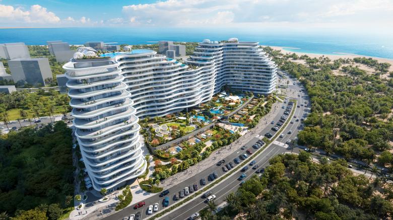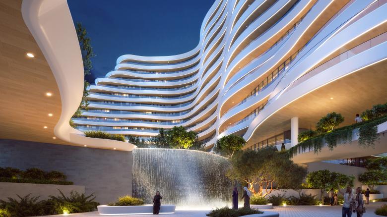 La Mazzoni is a residential development on Al Marjan Island in Ras Al Khaimah, conceived by Dewan Architects + Engineers as an architectural response to the meeting of land and sea. The project draws from the fluid threshold between sand and water, translating this moment of transition into a calm, sculptural form shaped by continuity rather than monumentality.