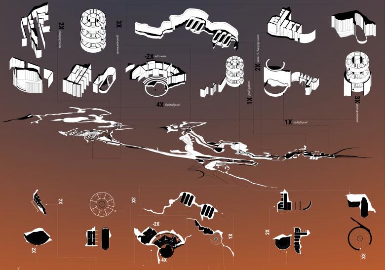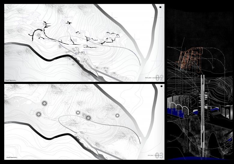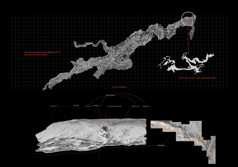 The concept was developed through a comprehensive examination of the terrain geomorphology in Eastern Serbia, with a particular focus on the dynamic natural transformations over time. The central idea was to integrate a new type of spa experience within Lazar's Cave, a prominent speleological site near Zlot, located in eastern Serbia. This site is part of a rich cluster of caves, each with unique geological characteristics. By following the principles of speleology, the project aims to offer a fresh perspective on the intersection of architecture and nature, within the context of spa design.