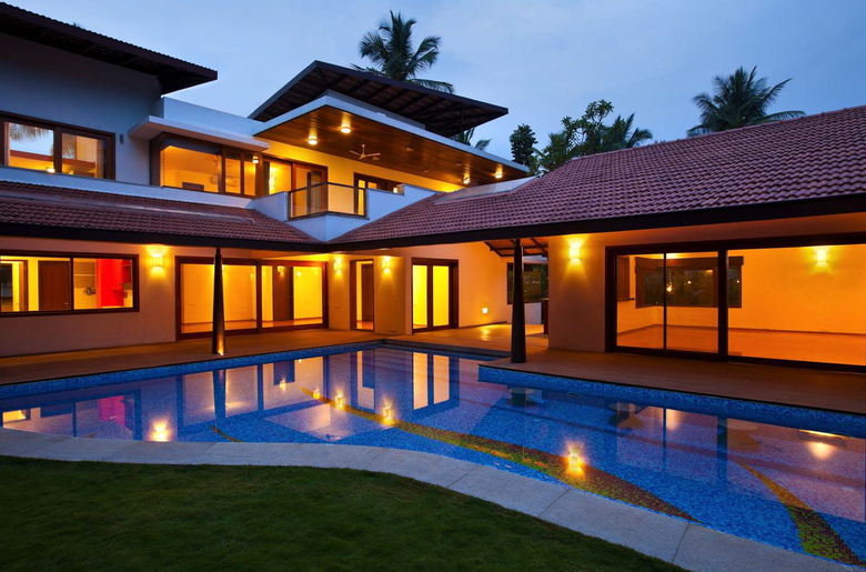 The house is climate and context sensitive. The Mangalore tiled terracotta sloping roof forms are reinterpretations if the vernacular houses in the region. The tiles and slopes combat the monsoon rains and protect the house from overheating in the summer. The east and northern faces of the house are transparent and permeable: they open to the soft morning light. Contrastingly, the western and southern facades of the house are intentionally more opaque in order to protect against the fierce west and southern sun.