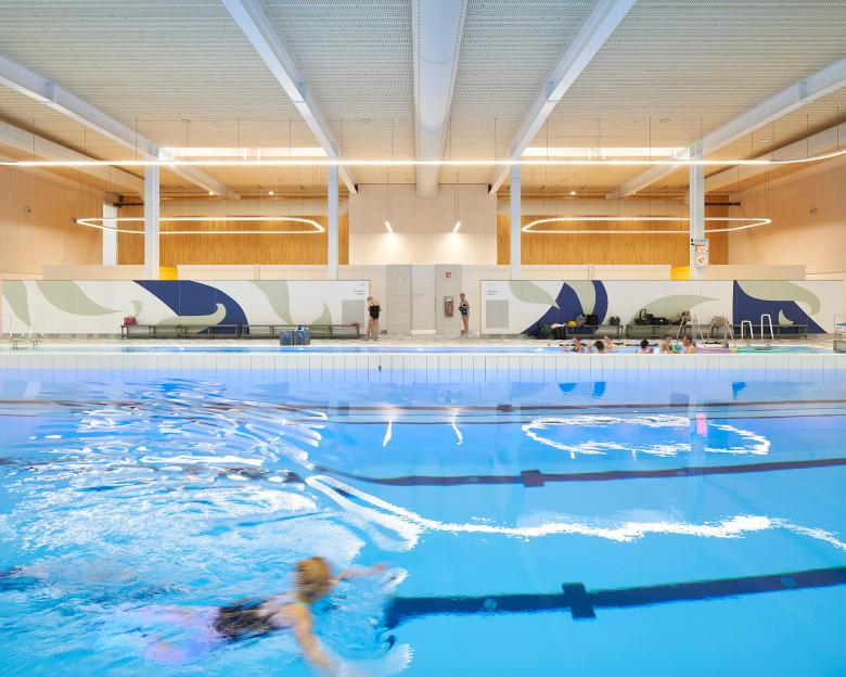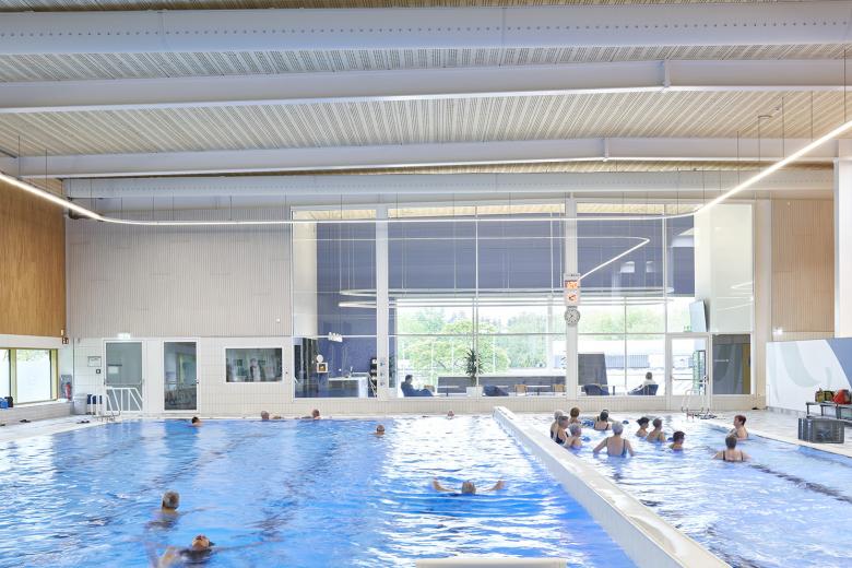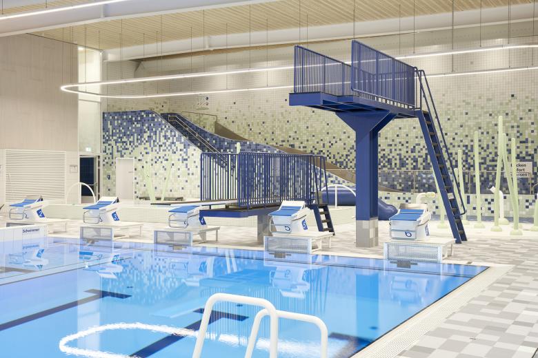 Der Entwurf basiert auf dem von slangen + koenis architecten und dem königlich niederländischen Schwimmbund (KNZB) entwickelten 2521 Konzept. 2521 steht für ein zentral liegendes Sportschwimmbecken mit einer Länge von 25 m und einer Breite von 21 m, um das die dienenden Funktionen wie Umkleiden und Duschen angeordnet sind. Um das Bad flexibel nutzen zu können, gibt es einen Hubboden und das Becken lässt sich abteilen. Die Idee dahinter ist eine bessere Verteilung der Wasserzeit, um die Halle optimal auszulasten. Um Kosten zu sparen, wurde ohne Keller und mit einem hohen Grad an Vorfertigung gebaut.