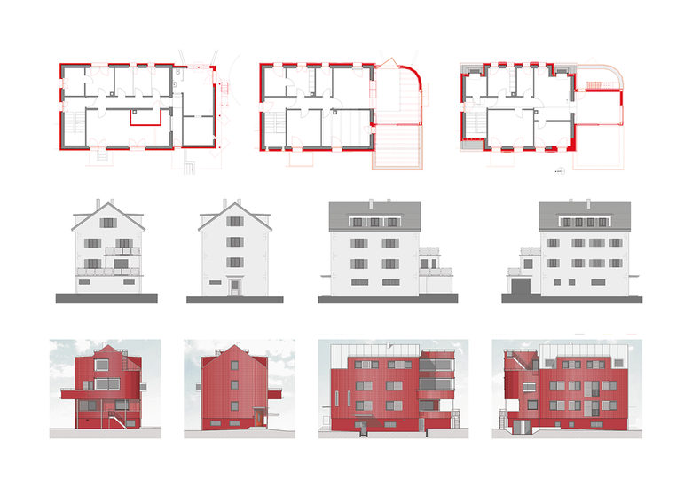 Die neue Holzverkleidung in kräftigem Rot fasst Alt und