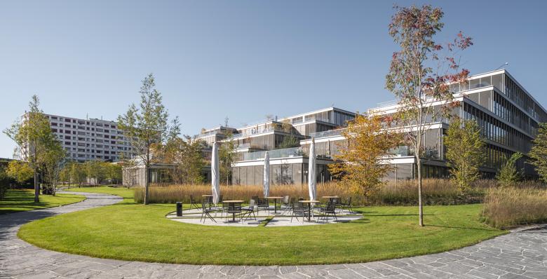 Le campus a obtenu le label Minergie P pour sa conception économe en énergie et la part importante des énergies renouvelables dans son mix énergétique, avec 1’300 panneaux photovoltaïques en toiture couvrant 20 % des besoins énergétiques du bâtiment. Le campus est raccordé au chauffage à distance avec un système de nouvelle génération qui garantira environ 80% d’énergie renouvelable à partir de 2024. Environ 70% du béton armé est de type recyclé avec des agrégats recyclés majoritairement récupérés de la démolition des immeubles occupant le site précédemment.