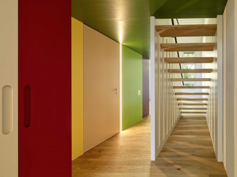 Alle 22 Wohneinheiten sind autark nutzbar, was unter anderem die zehn Zugangstreppen zu den Erdgeschosswohnungen versinnbildlichen sollen und an die traditionellen Reihenhaussiedlungen in England erinnern. Zur Vielfalt in der Einheit trägt auch das Farbkonzept der St. Galler Künstlerin Marianne Rinderknecht bei. Teils wurden Schrankfronten mit Farben versehen, welche in jeder Wohnung neu kombiniert sind und so den einzelnen Wohnungen Individualität verleihen.