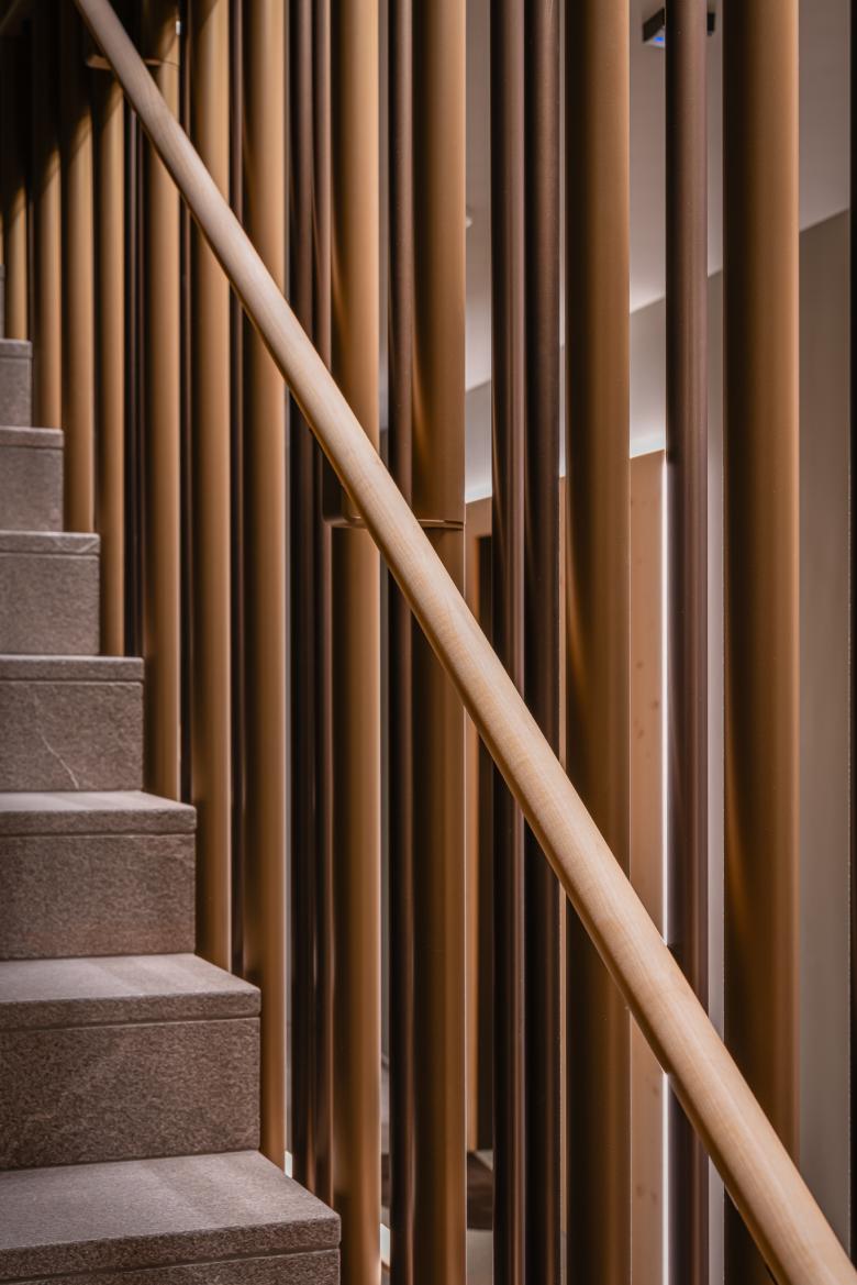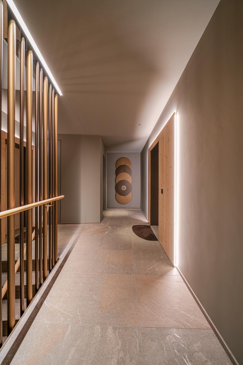Für die Innenraumgestaltung zeichnet sich das bekannte Schweizer atelier oï verantwortlich. Das Feingefühl für Design und Eleganz kommt deutlich zur Geltung, etwa bei der Abstimmung der exklusiven Möblierung und Beleuchtung mit der Architektur und Materialisierung. Das in enger Zusammenarbeit geformte Resultat vermag als eines der herausragenden Gesamtwerke von zeitgenössischem schweizerischen Designs zu überzeugen.