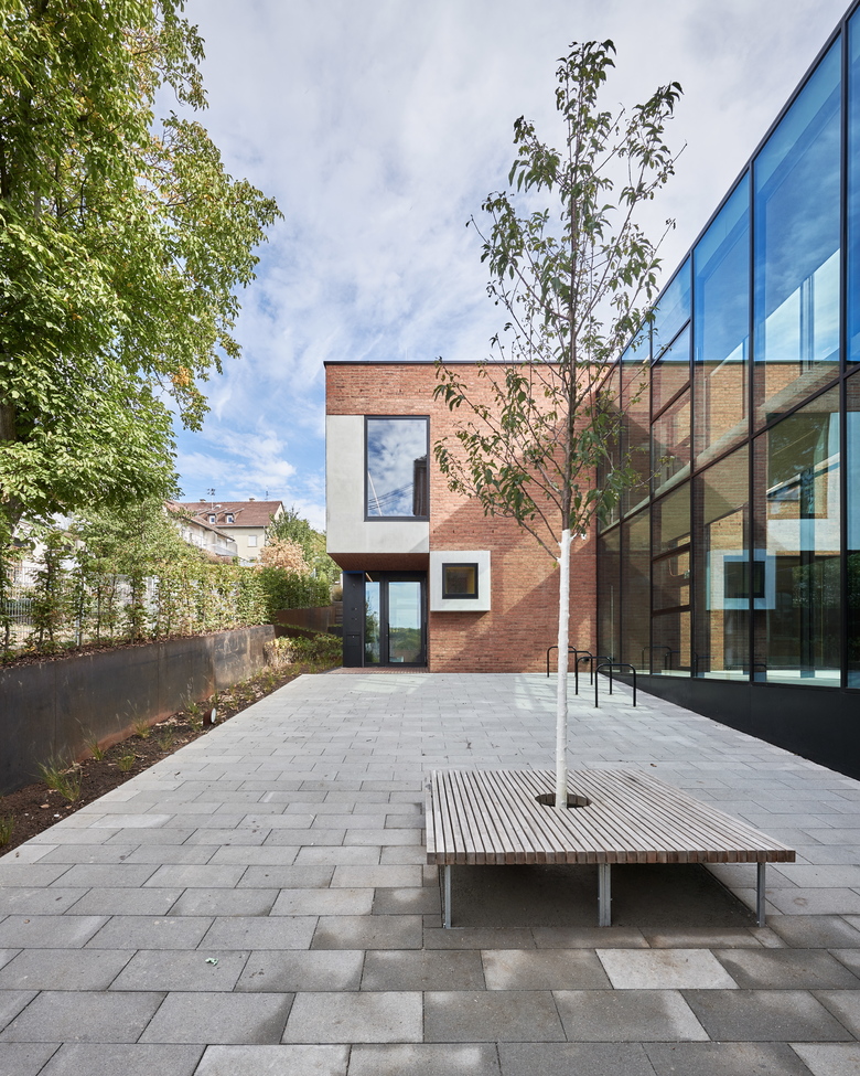 Für den Neubau wird auf die Materialien des Bestandgebäudes zurückgegriffen, wodurch Alt- und Neubau eine Einheit bilden.