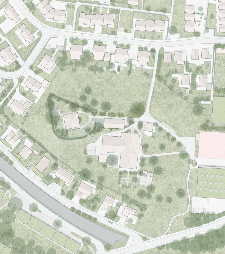 Das ortsbauliche Konzept verstärkt über die präzise Setzung des Ersatzneubaus, die Gestaltung der Ankunftssituation und die Nutzungsverteilung den schützenswerten Wohnstock als ‘Gesicht’ des Gosteli-Archives. Das Freiraumkonzept nimmt diese Lesart des Ortes auf und unterstreicht die Absicht mit differenzierten Interventionen. Die Eingriffe sind zurückhaltend und beruhen weitgehend auf dem Bestand.