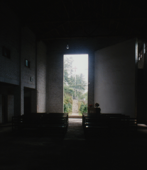 Located next to a mountain path, this rural church responds to its narrow site with a zigzag spatial sequence that generates the much needed transitional space from the profane to the sacred. Inside, a unique sacred space is created through pairing the chapel with an outdoor space which contains the altar. The volunteering architect adopted the form and material of local farm buildings to facilitate users’ participation in the design and construction process. These measures not only contributed to the completion of the project within a tight budget, but also could be seen as an experiment on the localization of Modernism in a developing country.