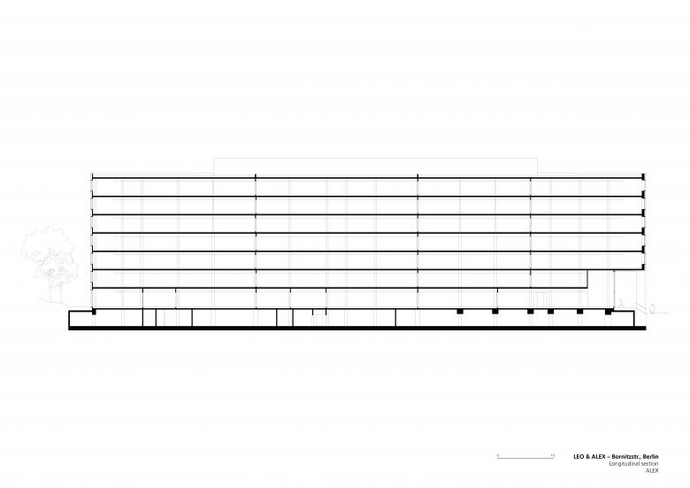 Die beiden Büroneubauten LEO & ALEX entstanden auf zwei unbebauten Grundstücken an der Bornitzstraße im Berliner Bezirk Lichtenberg. Namenspaten der Straße wie auch beider Gebäude des Projektes sind der Arzt und Autor Leopold Bornitz sowie sein Bruder, der Gemeindepfarrer Alexander Bornitz. Zwischen den beiden Volumen befinden sich die gemeinnützigen Lichtenberger Werkstätten, die zur Stiftung Rehabilitationszentrum Berlin-Ost gehören. Im Westen wird das Bürogebäude „LEO“ durch das denkmalgeschützte, ehemalige Werkstattgebäude der Konsumgenossenschaft Berlin begrenzt, erbaut 1926-27 von Otto Wettstein. Rückwärtig befindet sich ein weiteres Baudenkmal, die Industriebauten Josef-Orlopp-Straße 32/54 und östlich von „ALEX“ das 1997 erbaute Bürogebäude „The Wave“.