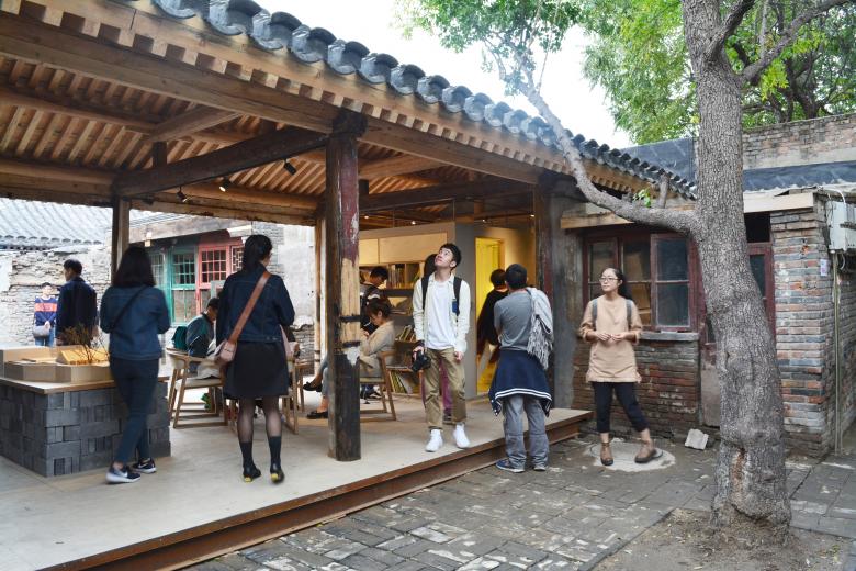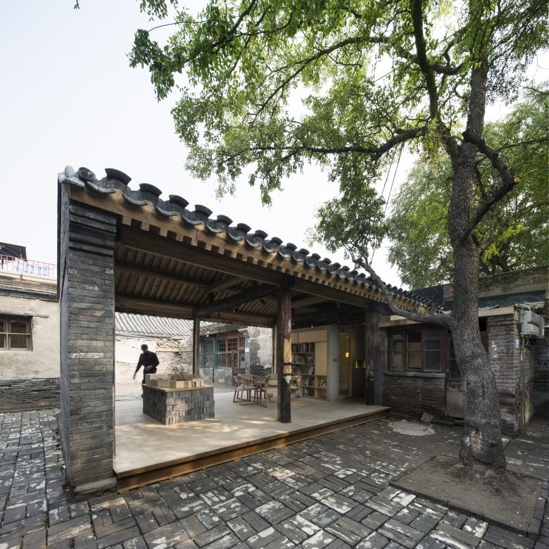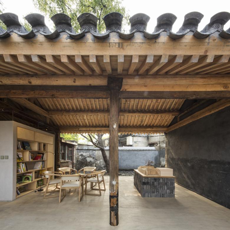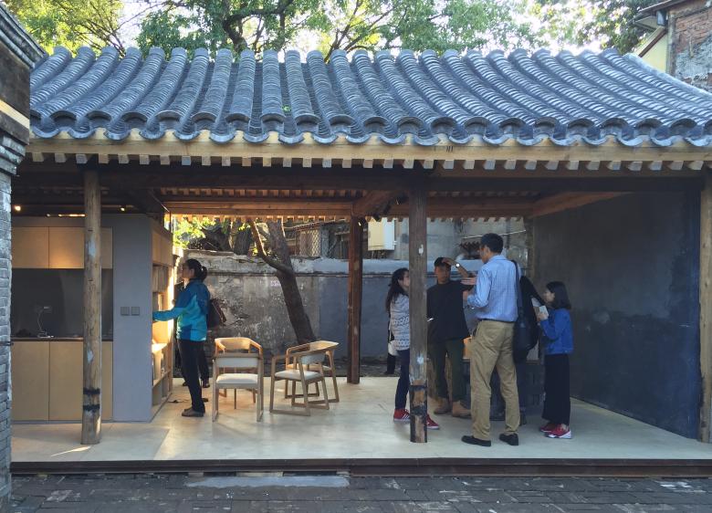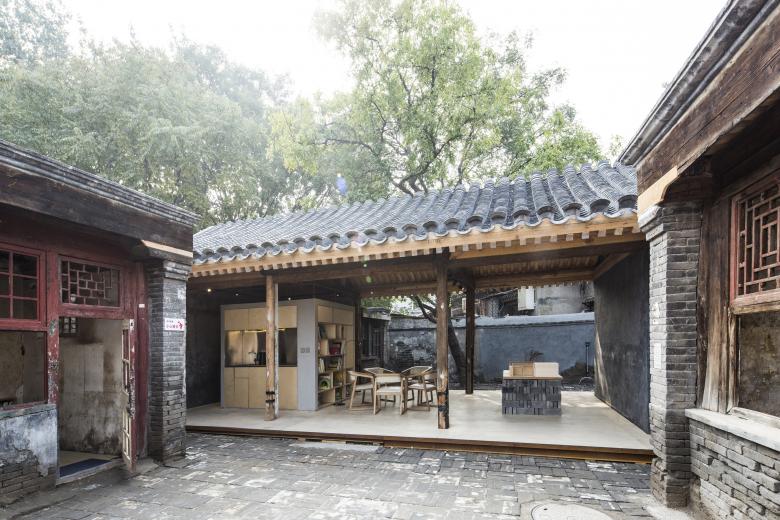 The project explores new possibilities of transforming a Dazayuan, in order to preserve and improve the conditions of the messy courtyard. The aim is to establish a public facility for the local inhabitants of HouHai, a communal accessible space desperately needed by the neighbourhood. This aim is approached in the project by two means, by applying a compacted infrastructure system indoor (i.e. freestanding service core), in order to provide services to the local people. The modular system contains a toilet, kitchen, washing machine and a small library and it could be reproduced and inserted into many other traditional hutong housing projects. The project and the exhibition carried out during the Beijing Design Week became the means to test the service core in a specific location of the proposed community house for the elderly and the young. The aim of the design is also to insert a covered linkage into the courtyard, to establish the interaction between the local inhabitants of the HouHai area.