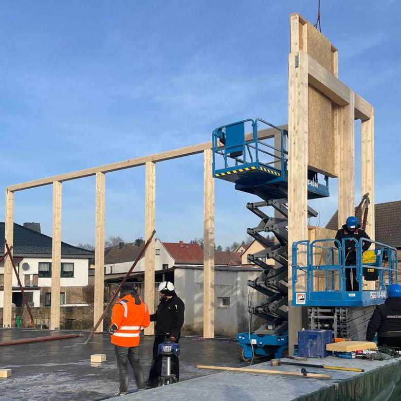 Für den Bau von neuen Ganztages-Grundschulen in Thüringen wurde im Rahmen eines Wettbewerbes unter der Federführung unsere Frankfurter Schwesterfirma DGJ Architektur ein neues Bausystem entwickelt, das vorhandene und gut eingeführte Technologien sinnvoll zu einem flexiblen Baukasten weiterentwickelt. Das Bausystem ist gerichtet und seine Grundmaße ergeben sich aus den für den Holzbau optimalen Liefermaßen der Materialien und sinnvollen Transportgrößen von maximal 12,5m Länge und 3,3m Höhe der Elemente. Gleichzeitig können die Breiten, sowie die Grundtypologie der Gebäude mit dem Bausystem flexibel an Standort, Lehrkonzept und die spezifischen Anforderungen der jeweiligen Schule angepasst werden. Die Stärken des Bausystems sind seine Einfachheit und Anpassungsfähigkeit. Ein speziell entwickeltes Bausystem basiert auf überall verfügbaren Bauweisen und Materialien und kann als opensource-Baukasten für jeden Schulstandort angepasst werden.