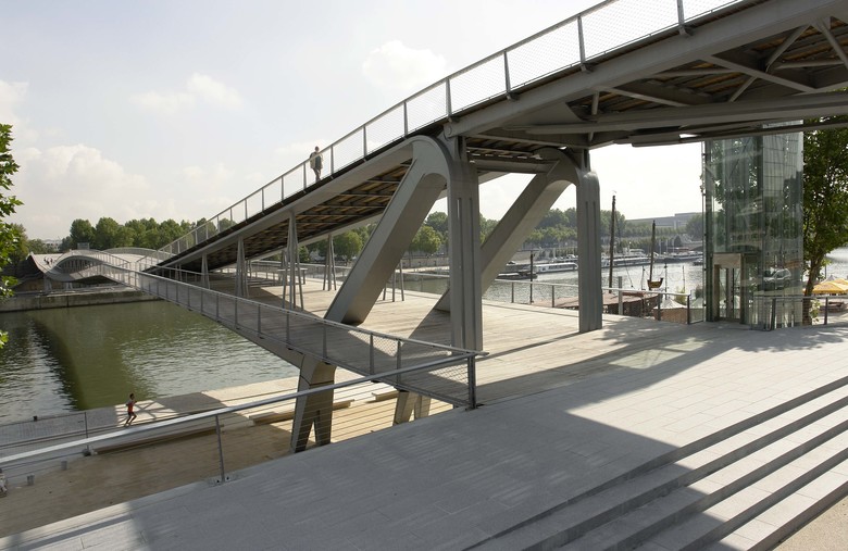 The Simone de Beauvoir footbridge seems to float in the air, carried along by its own momentum, simply depending on its own audacity. Grace is conferred by its physical lightness and elegance by its apparent technical simplicity. It is an event in itself: those using it are less motivated by a need to cross the river than by the pleasure of being there to contemplate the river, the passing of time, and the new landscape that it reveals and arranges. Without it, the river Seine and its surrounds would now seem incomplete.