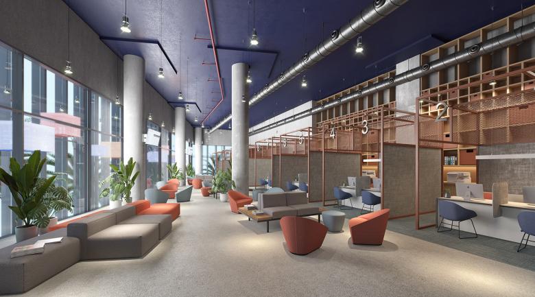 A hub with a young soul, an open space that allows a wide range of functional possibilities. The customer service area gives way to an open space that allows the dynamic location of the workstations. The space for informal meetings can be configured to hold exhibitions, training activities or debates as a new agora that allows the promotion of a new generation of active citizens.