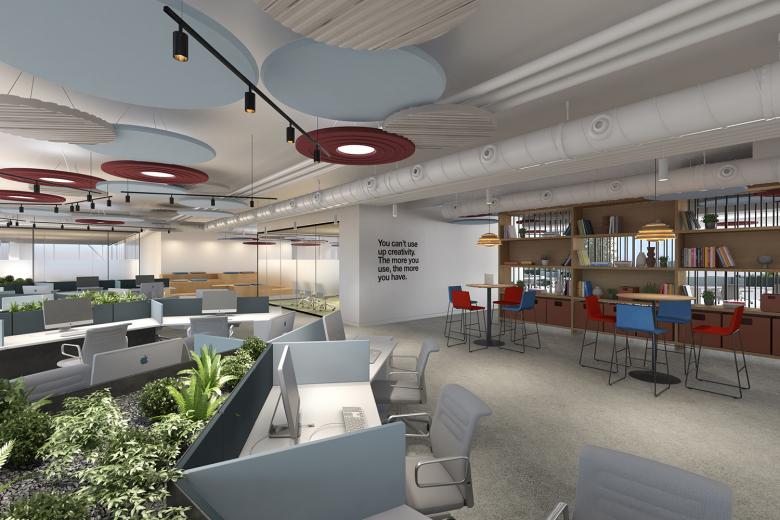 Through intelligent use of mobile and modular furniture, informal meeting areas can quickly become spaces for group activities. The coworking area distributes organically parallel to the glazed surface of the façade. This high-luminosity location mitigates fatigue and promotes creativity.
