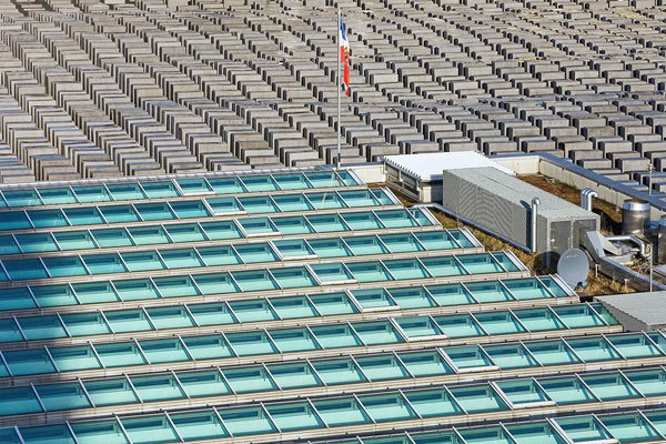 (Arch. Cornelsen & Seelinger) und Stelen des Holocaust-Mahnmals (Arch. Peter Eisenman) aus: Dächer über Berlin