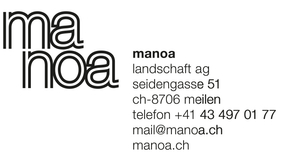 Seit der Gründung 2007 widmet sich manoa landschaft ag in Meilen der Planung, Projektierung und Gestaltung von Aussenräumen und Landschaften und deren Unterhalt und Pflege. Öffentliche und private Freiräume, Siedlungsfreiräume, Gärten, Spiel- und Schulanlagen «bauen wir um den Menschen herum». Seine Bedürfnisse als Nutzer und Bewohner – Wärme, Freundlichkeit, Wohnlichkeit – stehen immer im Zentrum.