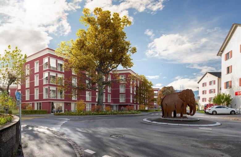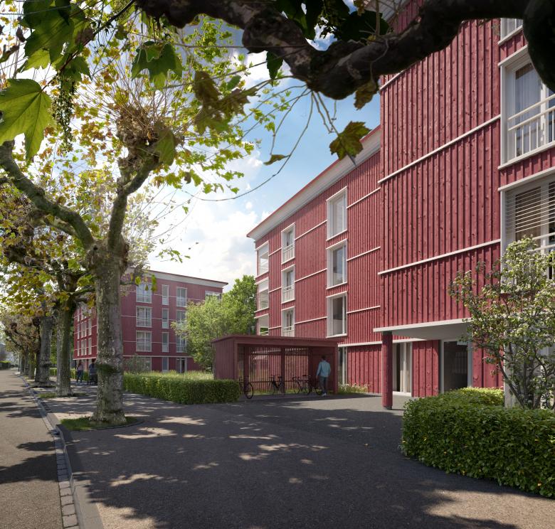 Auf einem Grundstück mit bestehenden Wohnbauten aus den 1940er Jahren sollen alle Bauten abgebrochen und durch zeitgemässe, verdichtete Neubauten ersetzt werden. Das Projekt sieht eine Setzung von sechs formal ähnlichen Gebäuden vor, die sowohl eine Strassenfassade aufweisen und sich so im Quartier verankern, gleichzeitig aber auch mit einer freieren Form gegen die Grundstückmitte hin parkartig fliessende Räume erzeugen. Es entsteht ein grosszügiger, in der Mitte taillenartig eingeschnürter Freiraum mit unterschiedlichen Aufenthaltsqualitäten.
