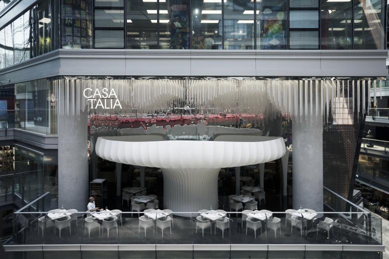 The project is located in Parkview Green, the most artistic commercial office complex in Beijing. In the "heart" of the nearly 100-meter-high open atrium, there appears a mysterious white and pure Artwork suspended in the air, which is CASA TALIA Restaurant designed by CAA architects led by Liu Haowei.