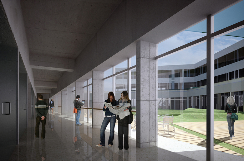 The building program includes a full-fledged academic building, student residences, and common amenities. The master plan also provides for an Executive Learning Centre with a high-end hotel to be built in the second phase, as well as a future research wing.