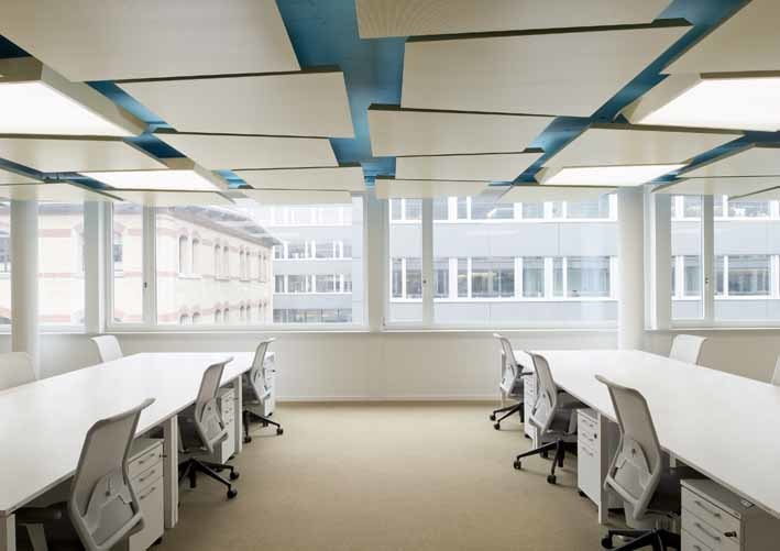 Ein Element prägt das neue Erscheinungsbild massgebend: eine speziell entwickelte, trapezförmige Leuchte, welche sich an dem Deckenraster der Architektur orientiert. Die Leuchte schafft über eine Zeitsteuerung mit dynamischen Übergängen verschiedene Beleuchtungssituationen je nach Tageszeit.