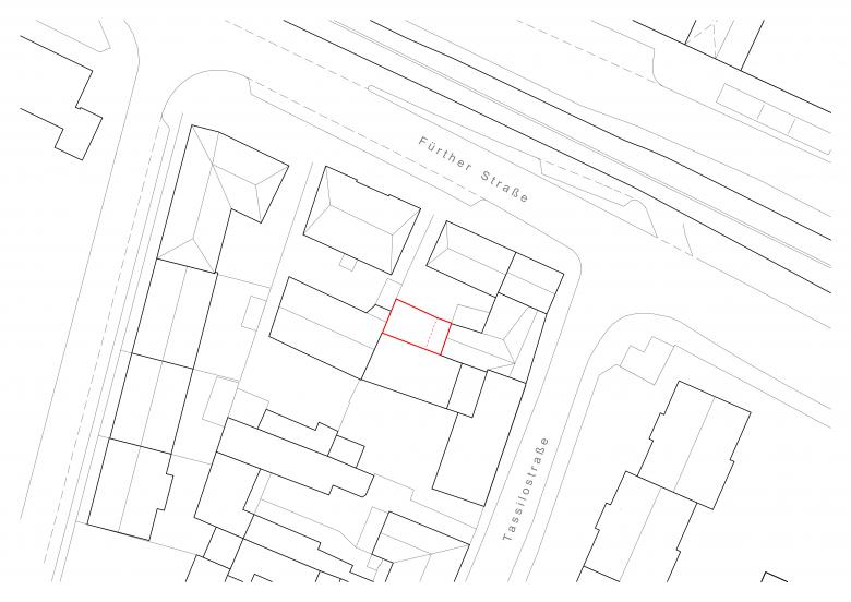 Auf einem Grundstück an der Fürther Straße in Nürnberg wird eine Baulücke im Hinterhof geschlossen und neuer Wohnraum geschaffen. Es entsteht ein zum Hof orientiertes, dreigeschossiges Wohnhaus mit drei Einheiten.